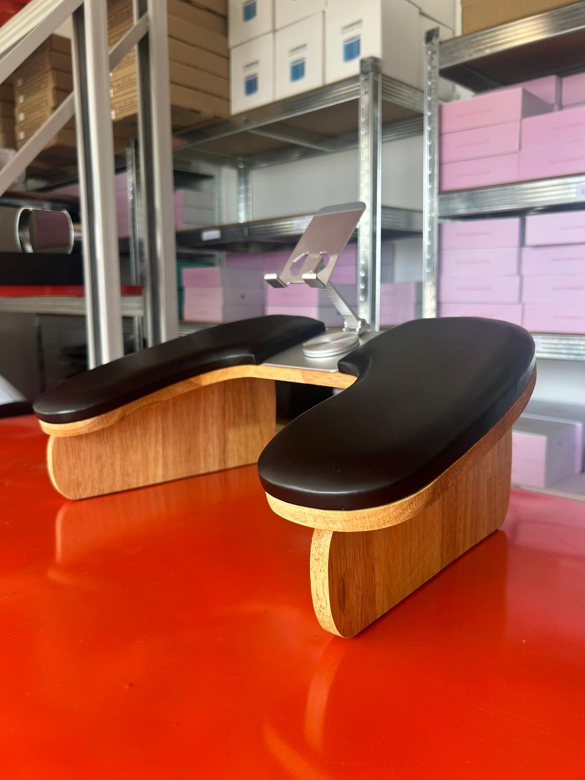 Su base de madera maciza aporta un estilo elegante y moderno, mientras que la superficie acolchonada permite que tu clienta apoye los brazos de forma cómoda durante todo el servicio, evitando tensiones y mejorando la postura.